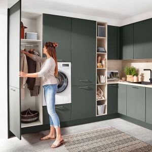 • Laundry basket drawers – Pull-out drawers designed to hold baskets for separating colours, whites, towels and linens make laundry organisation much simpler.