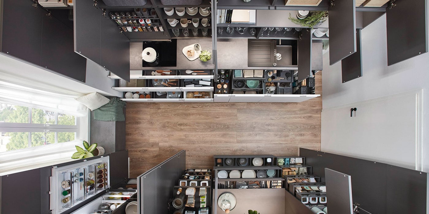 • Internal drawers – Slim drawers inside cupboards are perfect for small items such as spare sponges, cloths or batteries.